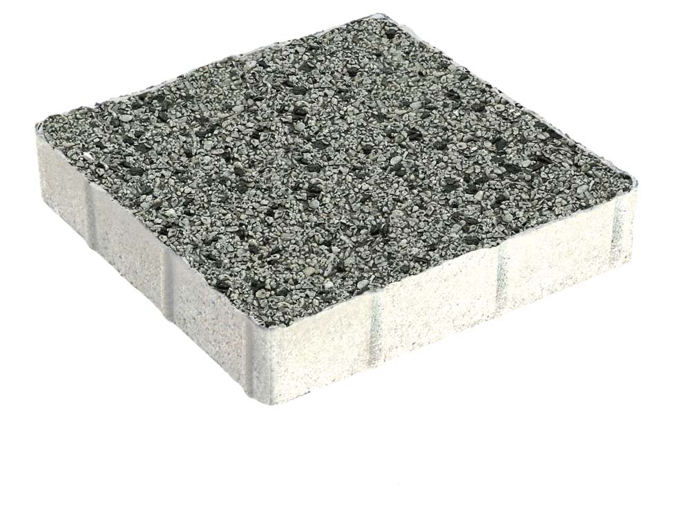 คอนกรีตเนื้อแน่น ไม่แตกร้าว ไม่บิ่น สีของผิวหน้าสม่ำเสมอ คอนกรีตบล็อก ชนิดความหนาชั้นผิวหน้าไม่น้อยกว่า 5 มม. ความหนา 6 ซม.
